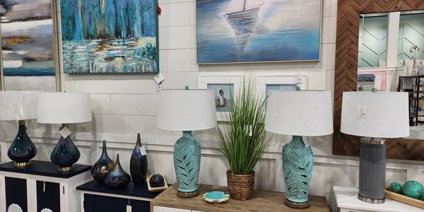 We carry a wide selection of coastal inspired lamps and hanging lighting! New products arriving weekly!